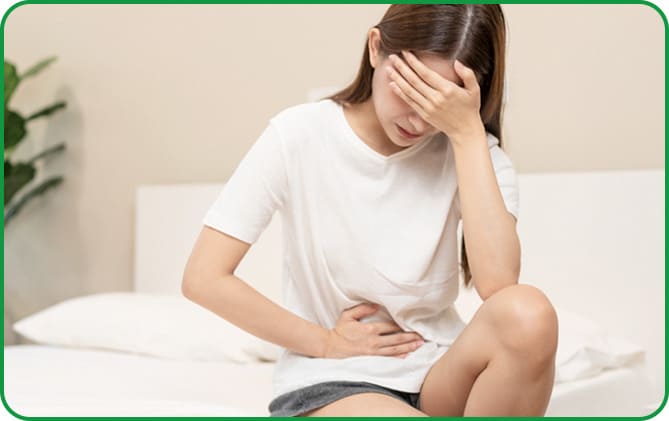 Người bệnh mệt mỏi, rối loạn về tiêu hoá, hay bị tiêu chảy, táo bón, đầy hơi hoặc buồn nôn, đặc biệt các triệu chứng này xuất hiện nhiều khi hành kinh;